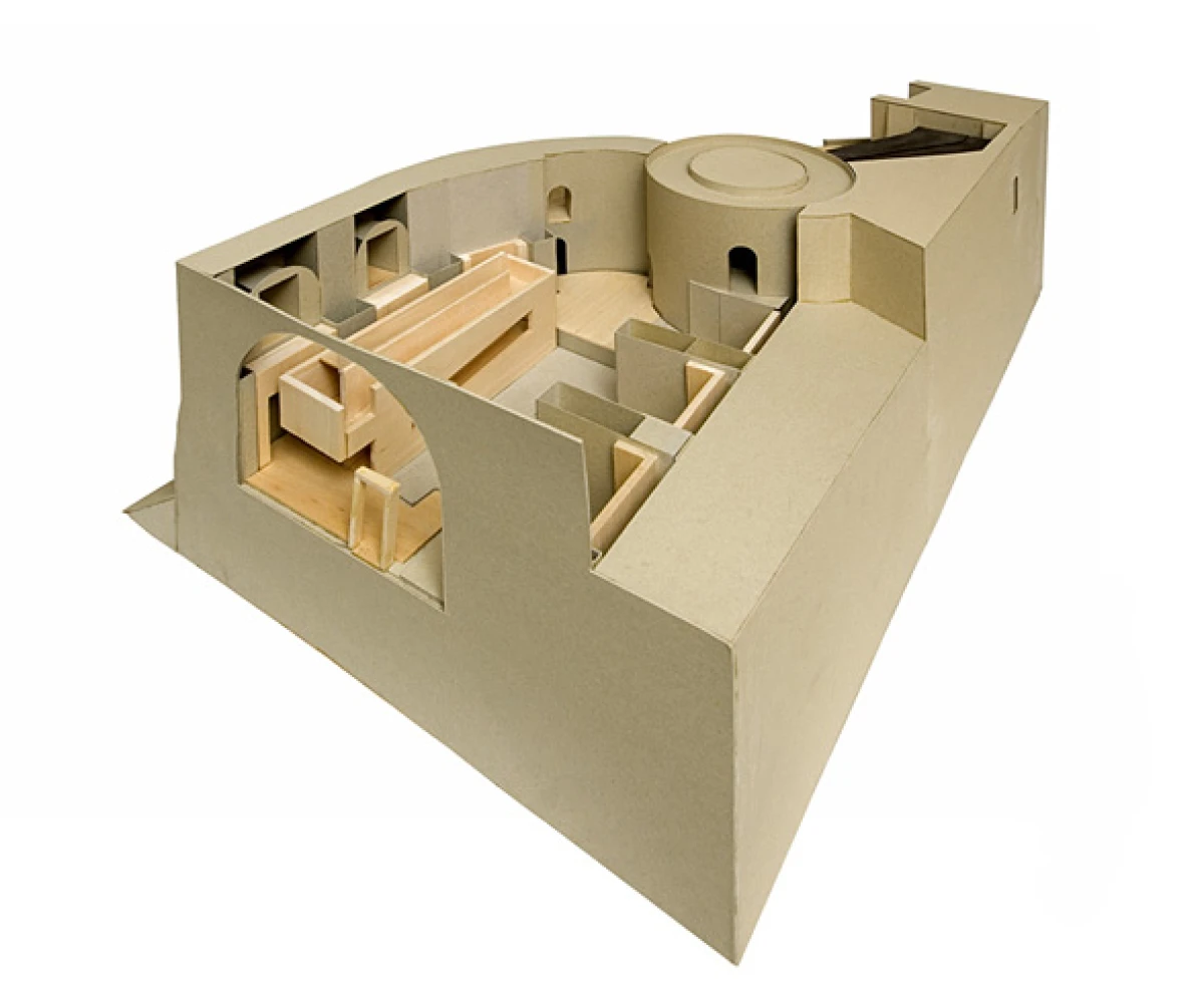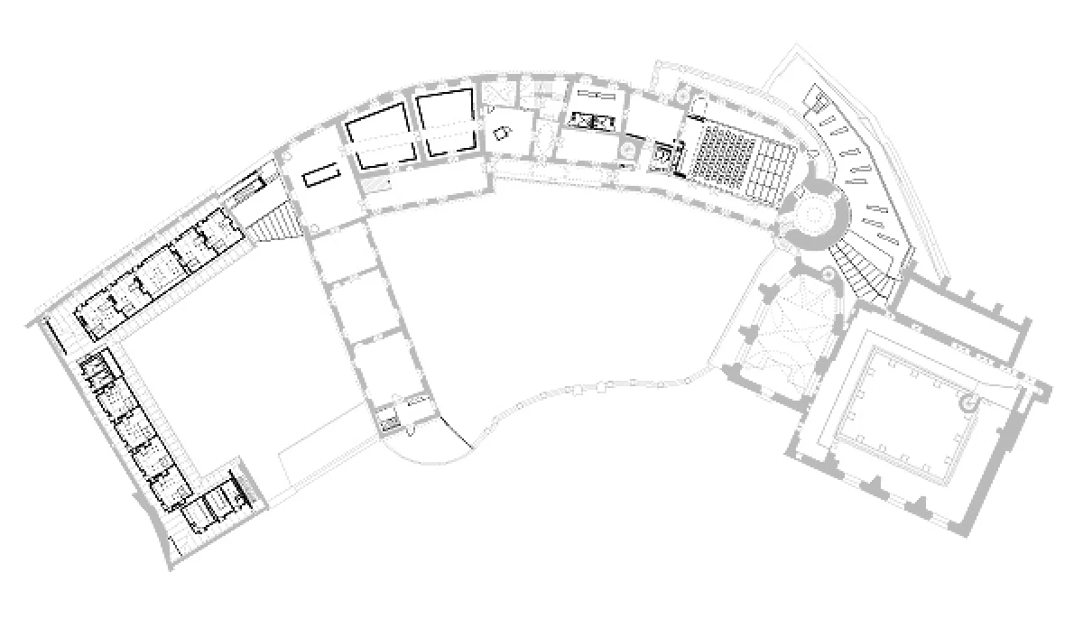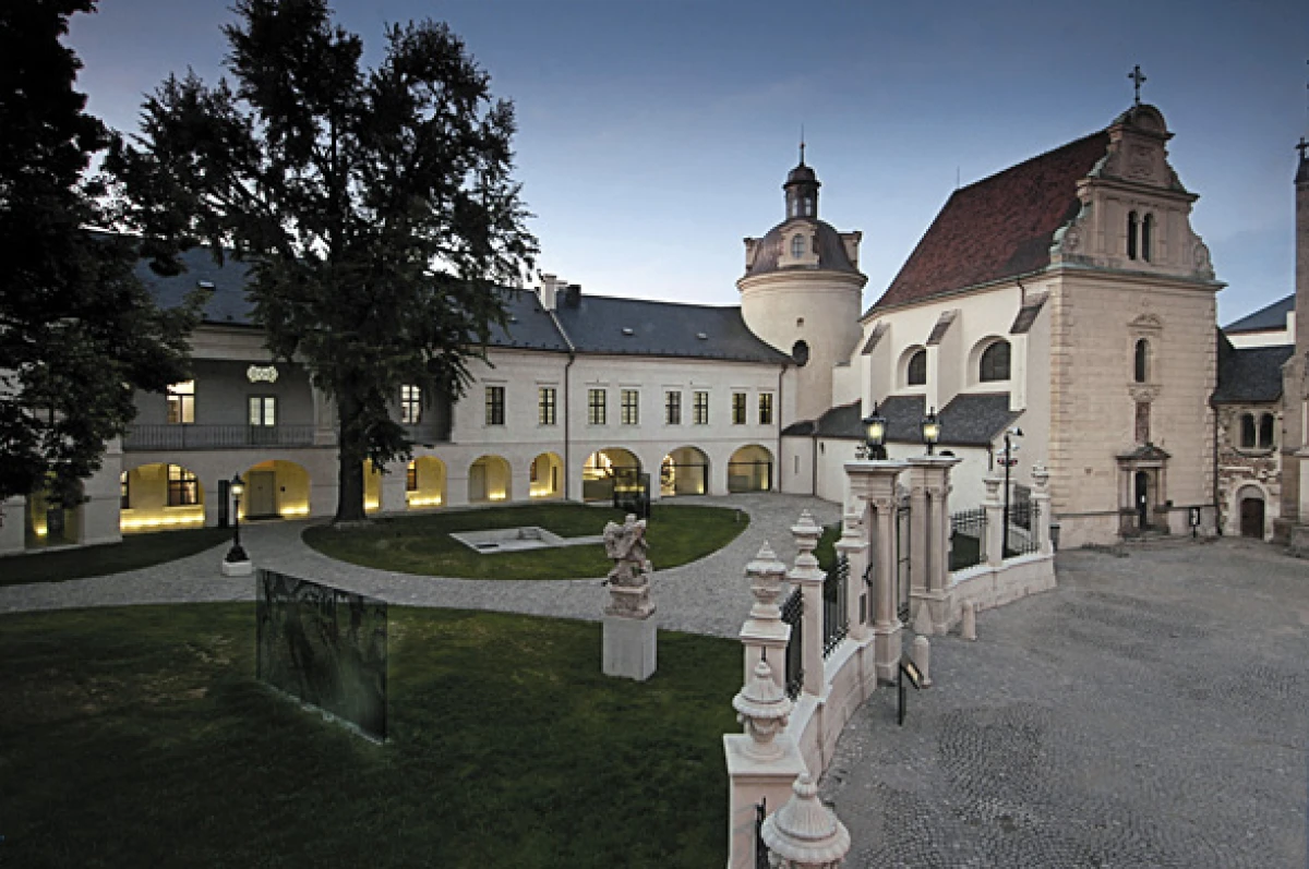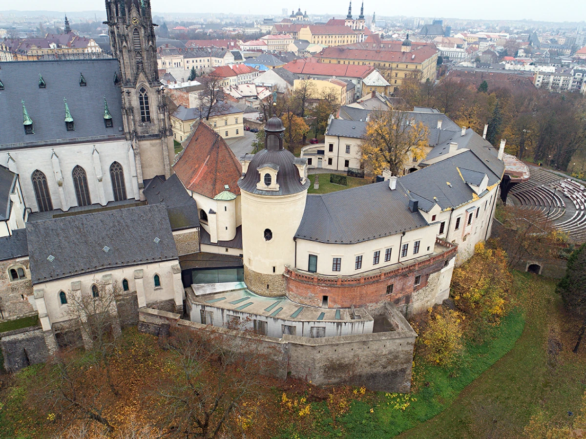 Arcidiecézní muzeum je umístěno do komplexu tzv. Přemyslovského hradu, zapsaného do seznamu národních kulturních památek. Objekty románského biskupství, kapitulního děkanství a hospodářského dvora utvářejí společně s dómem sv. Václava a kostelem sv. Anny srostlici tvarů, která se paprskovitě rozvíjí podél organické linie hradeb. Při návrhu byly respektovány všechny dochované styly od románského období až po začátek dvacátého století. Vzhledem k tomu, že se pohybujeme ve velmi pestrém areálu, vnímali jsme jeho hodnoty v neopakovatelné koláži stylů a rozmanitého tvarosloví architektury. Stávající stavby jsme přijímali jako učebnici architektury, kterou je potřeba respektovat, opravit ale také připsat další díl našeho století, který tu zatím chyběl. Celkovou koncepcí se stal příběh o „infikovaném organismu“. Viry v našem případě nemají za cíl organismus umrtvit, ale naopak ho posílit. Proto je původní struktura doplněná o cizorodou součást, která se stane její další vrstvou. Do rekonstruovaného a restaurovaného komplexu byly přidány nové prvky, nezbytné z hlediska funkce a provozu muzea. Nové objekty se jasně odlišují od původních konstrukcí a prostupují interiérem a exteriérem celého areálu. Při jejich tvorbě jsou použity tři materiály podporující kontrastní atmosféru mezi novým a starým: beton, ocel a sklo. Původní „staré“ konstrukce jsou obnoveny ve své ryzí podobě, nové jsou prostoupeny systémem moderních funkcí a technologií. Nejzřetelnějším novým zásahem do památky je provozní propojení kapitulního děkanství a biskupského paláce ve formě vloženého železobetonového objektu, skrytého za hradbou na parkánové terase. Nový betonový objekt není pouze chodbou, ale dalším výstavním prostorem, který zároveň propojuje původní objekty. Dalším výrazným objemem je společenský sál. Obdobně jako všechny vložené nové prvky je i sál vsazen do jednoho objektu a to včetně konstrukce i technologie. Jeho důležitou součástí je posuvný závěs, který umožňuje vyladění akustiky sálu a zároveň tvorbu různých scénografických konfigurací. Největší koncentrace vložených prvků se nachází v části Hospodářského dvora, kde je soustředěna většina technického a provozního zázemí: kanceláře zaměstnanců, depozitáře, restaurátorská dílna anebo fotoateliér. V souladu s architektonickou koncepcí, kdy se nové objekty a vkládané prvky zřetelně oddělují od původní historické budovy, byl řešen i výstavní fundus. Díky stylové rozmanitosti celého areálu bylo možné instalovat exponáty do příbuzného prostředí, tedy románské a gotické prvky v románských a gotických prostorech, barokní exponáty v barokních sálech. Charakter expozice v suterénu je svojí atmosférou bližší vybraným exponátům ze středověku, a proto se zde vyskytují většinou masivnější neprůhledné prvky. Naopak expozice v patře, kde jsou umístěny barokní exponáty, je navržena odlehčenější, průsvitnější a snaží se nejen dobře prezentovat exponáty, ale zároveň nerušit bohatě zdobené a členité barokní interiéry. Ve staré skořápce jsou rozesety nové ocelové a betonové organismy, které mohou v čase přibývat, ubývat, nebo být nahrazeny jinou vnitřní tkání pro nový život.