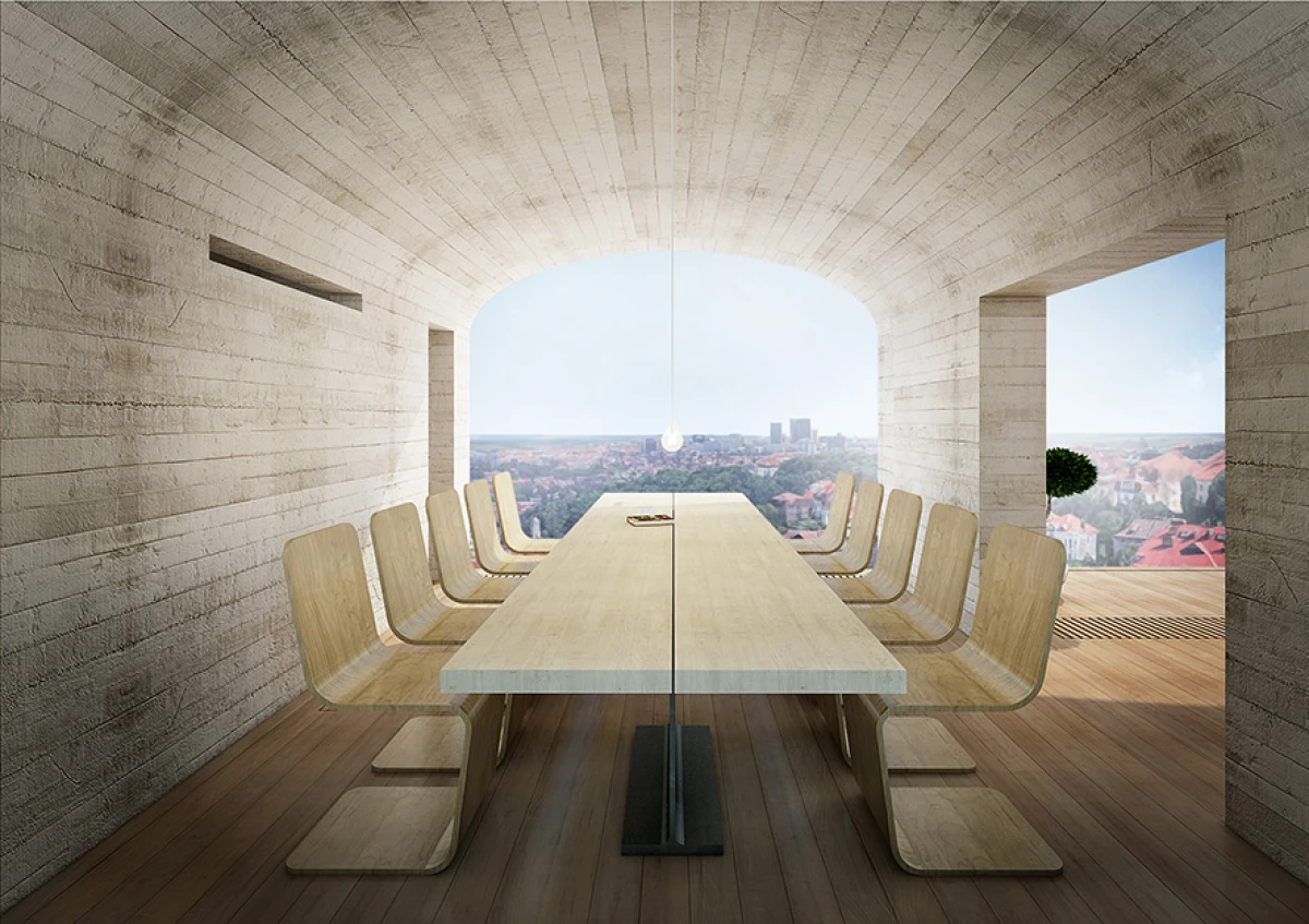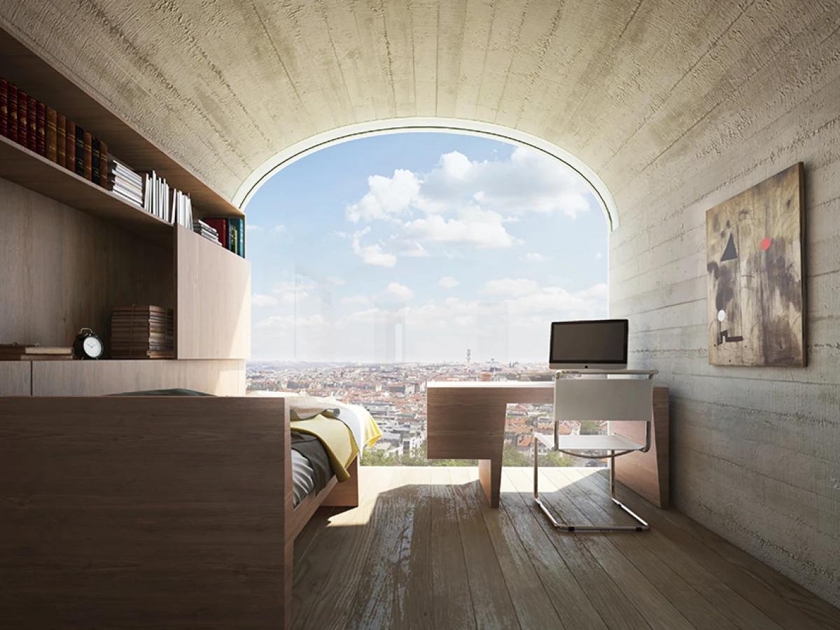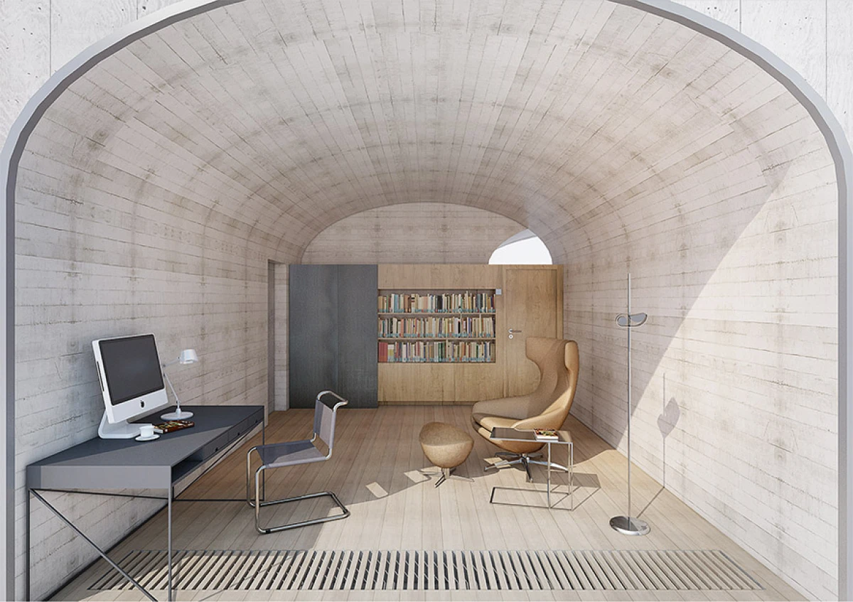 Dům s klenbami je situován do rezidenční čtvrti na Malvazinkách na pražském Smíchově, kde se v blízkosti nacházejí významné vily, například Winternitzova vila od Adolfa Loose a Karla Lhoty nebo Pickova vila od Ernsta Wiesnera. Vzhledem tomu, že stavba bude konfrontována s takto významnými objekty, vyvstala otázka, jakým způsobem lze zapojit novostavbu do tohoto prostředí? Co by mohlo v dnešní době směřovat návrh k formě, která by představovala reprezentační výraz? Co má přesně udávat charakter takové stavbě? Jedním z atributů, který se často používal v minulosti, byla klenba, která především znamenala statickou možnost zastropení prostoru. Známe množství historických palácových staveb, které vyzařují noblesu, jejíž výraz je postaven právě na použití klenby. Nicméně moderní doba s klenbou příliš nepracuje. Návrh lze tedy nazvat „Dům s klenbami“. Jedná se o důsledné uplatnění valených kleneb v místnostech, které přichází do kontaktu s denním světlem. Klenby vychází vždy od dvou metrů nad podlahou místnosti a přechází do poloviny elipsy. Všechny místnosti se svým celým profilem zřetelně propisují na fasádu a velká okna zároveň umožňují výhled do zahrady a na panorama Prahy. Díky stísněným podmínkám pozemku využívá navrhovaná novostavba možnost umístění zeleně na střeše. Z konstrukčního hlediska je objekt navržen z monolitického pohledového betonu, který bude v celém objektu ponechán jako finální pohledová úprava s otiskem letokruhů po vložených prknech. Zvolená koncepce umožnila řešit dispozici podle potřeb investora, který chtěl mít v každém patře jiný počet místností. Stěny nemusí stát na sobě, neboť nám zatížení pomáhají roznést klenby.