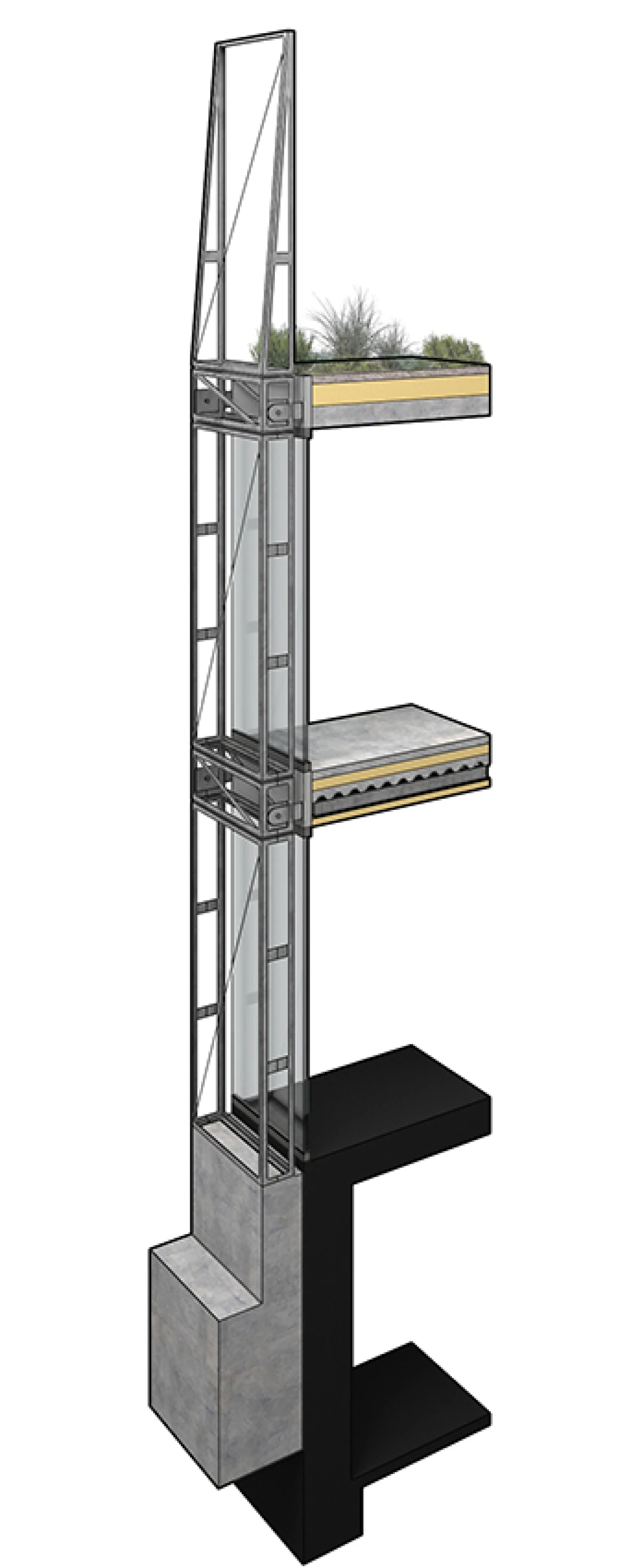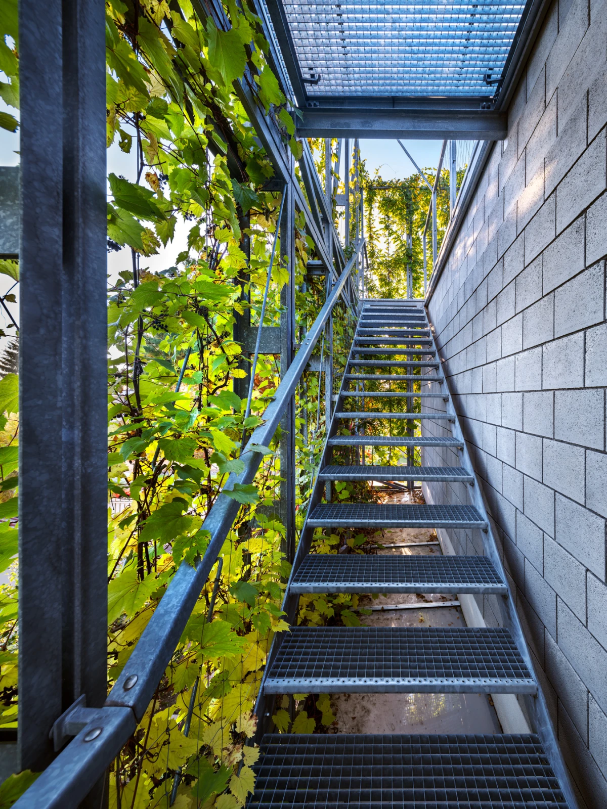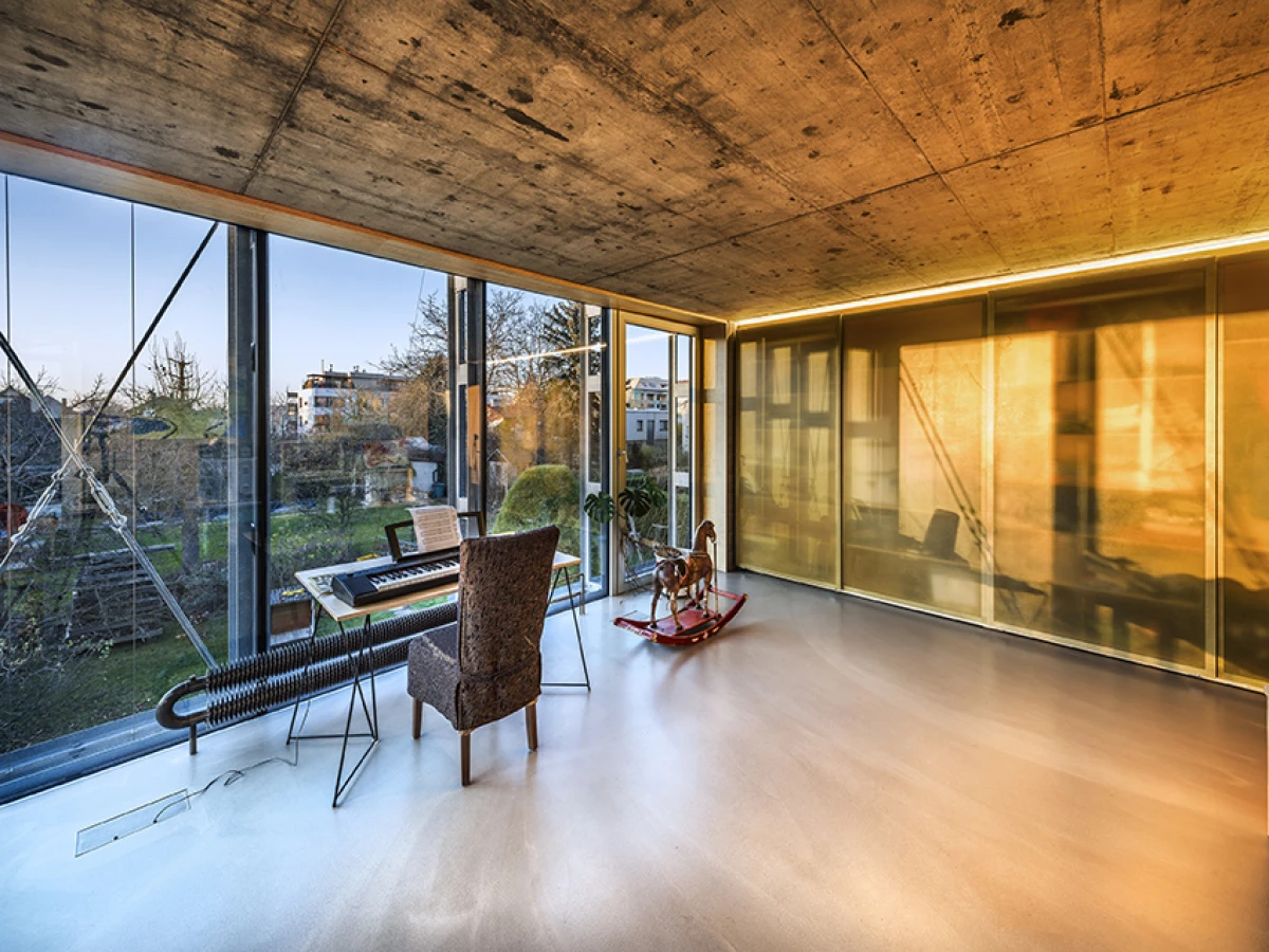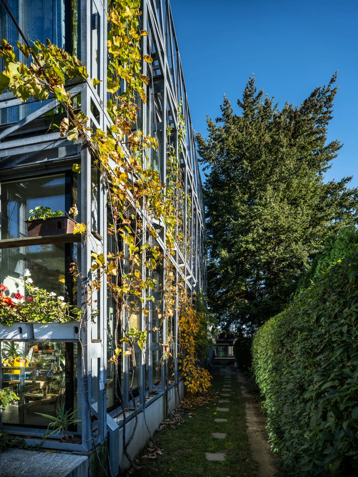 Jedná se o stavební úpravy rodinného domu v Praze, který byl jako původně rekreační objekt z třicátých let 20. století několikrát dostavován a přestavován k trvalému bydlení. Vzhledem k těmto zásahům přestala být jeho stabilita dostatečná. Základním rozhodnutím tedy bylo doplnit a celkově ztužit konstrukci ocelovým korzetem. Dalším problémem byla původní mansardová střecha, jež měla tloušťku pouhých 15 cm. Odstranění celé střechy, ke kterému jsme se nakonec rozhodli, umožnilo nejen efektivněji vyřešit problém zateplení, ale i úpravu dispozice ve druhém nadzemním podlaží tak, aby vyhovovala požadavkům investora. Druhé nadzemní podlaží je zároveň v místě bývalé terasy rozšířeno o nový pokoj. Ocelový korzet není pouze technickým prvkem, je zamýšlen i jako treláž pro popínání rostlin, a po architektonické stránce sceluje celý objekt. Zděná konstrukce druhého patra z lehkých betonových tvárnic doplňuje nosnou ocelovou část a pomáhá vynést novou střešní železobetonovou desku, která bude sloužit jako pochozí terasa se zahradní úpravou. Přístup na střechu rovnou ze zahrady umožňuje obslužné schodiště, které je navrženo z boční strany objektu v rámci ocelové konstrukce.
