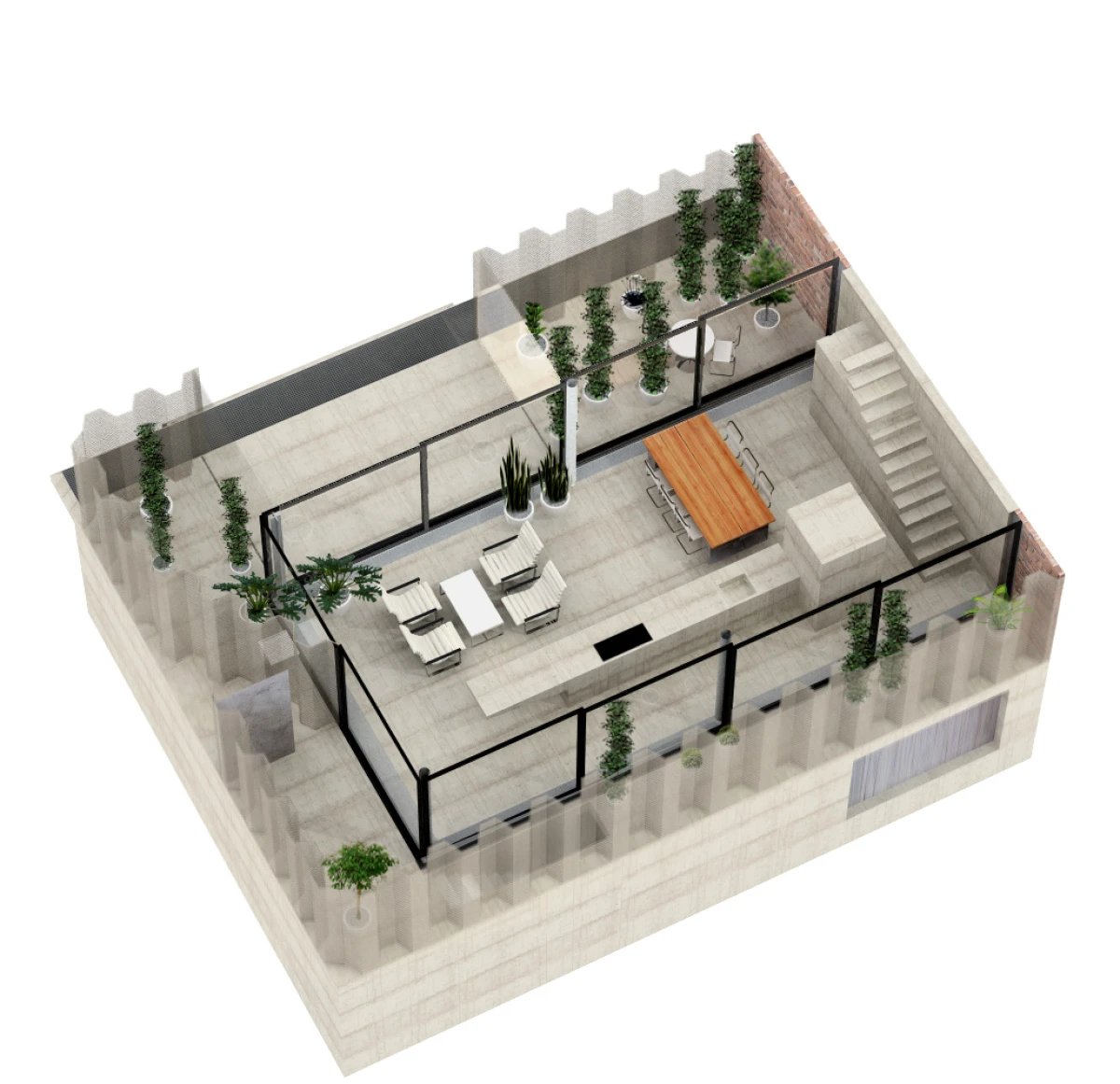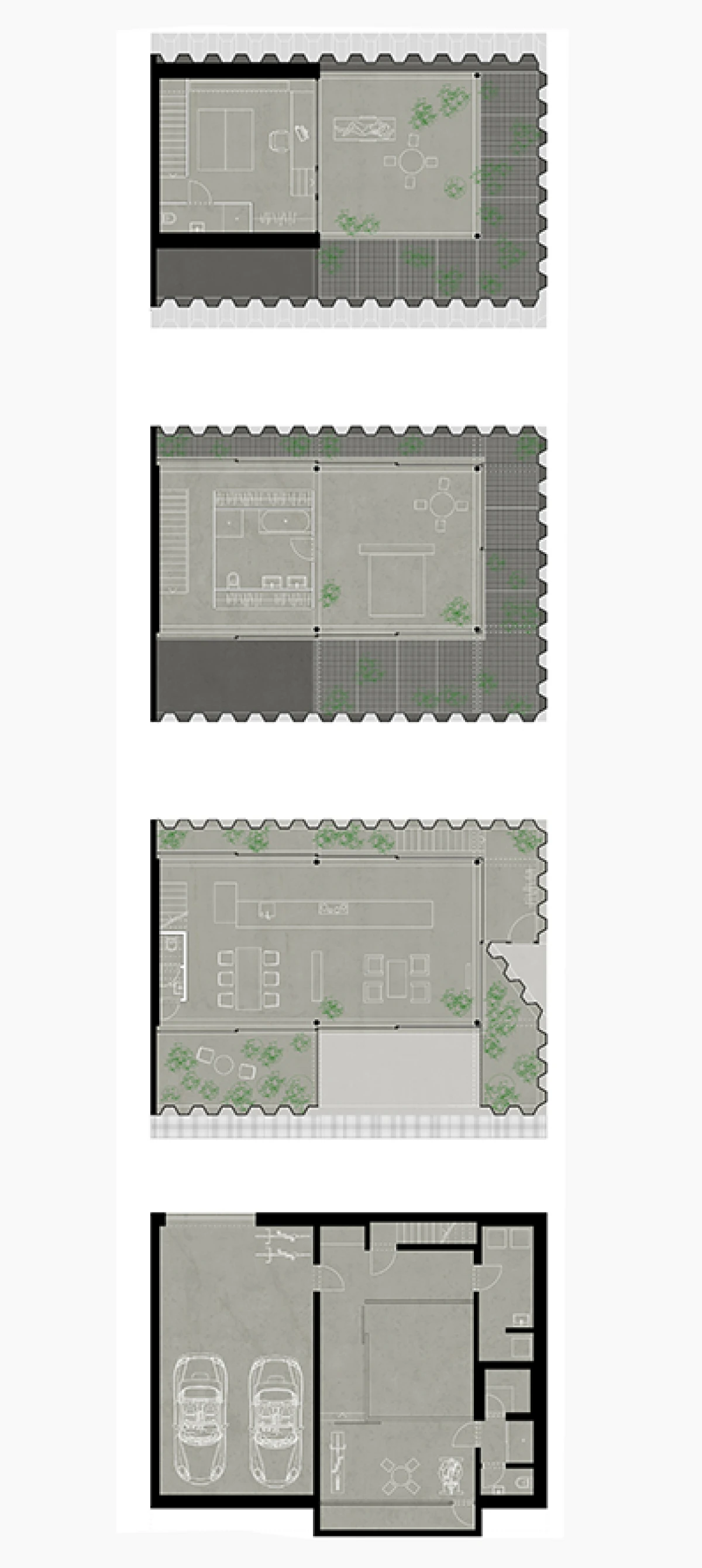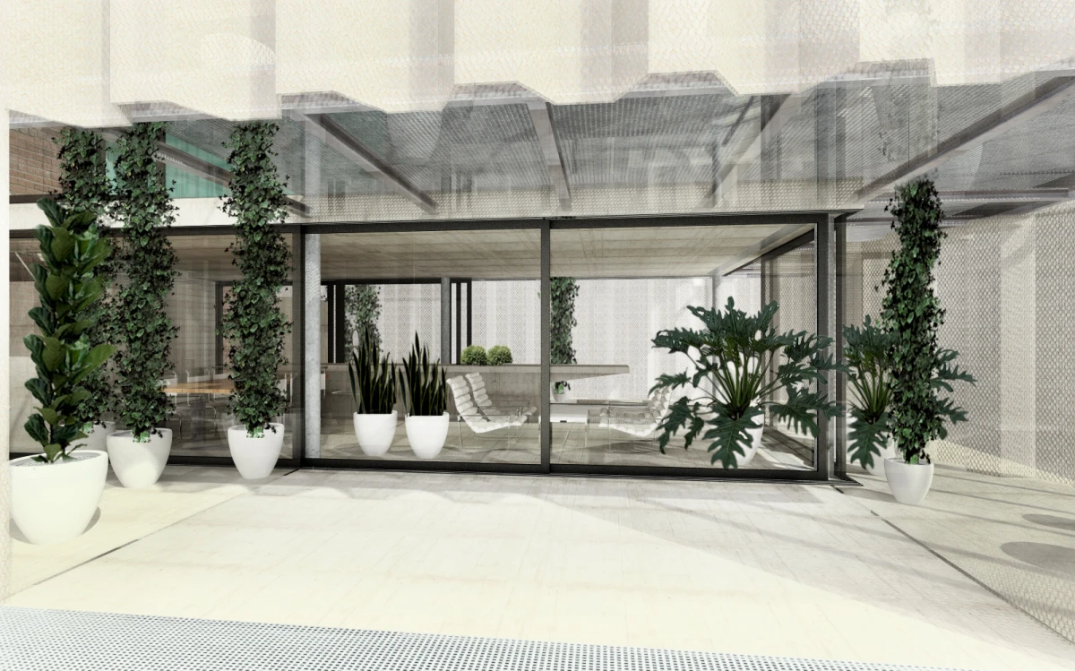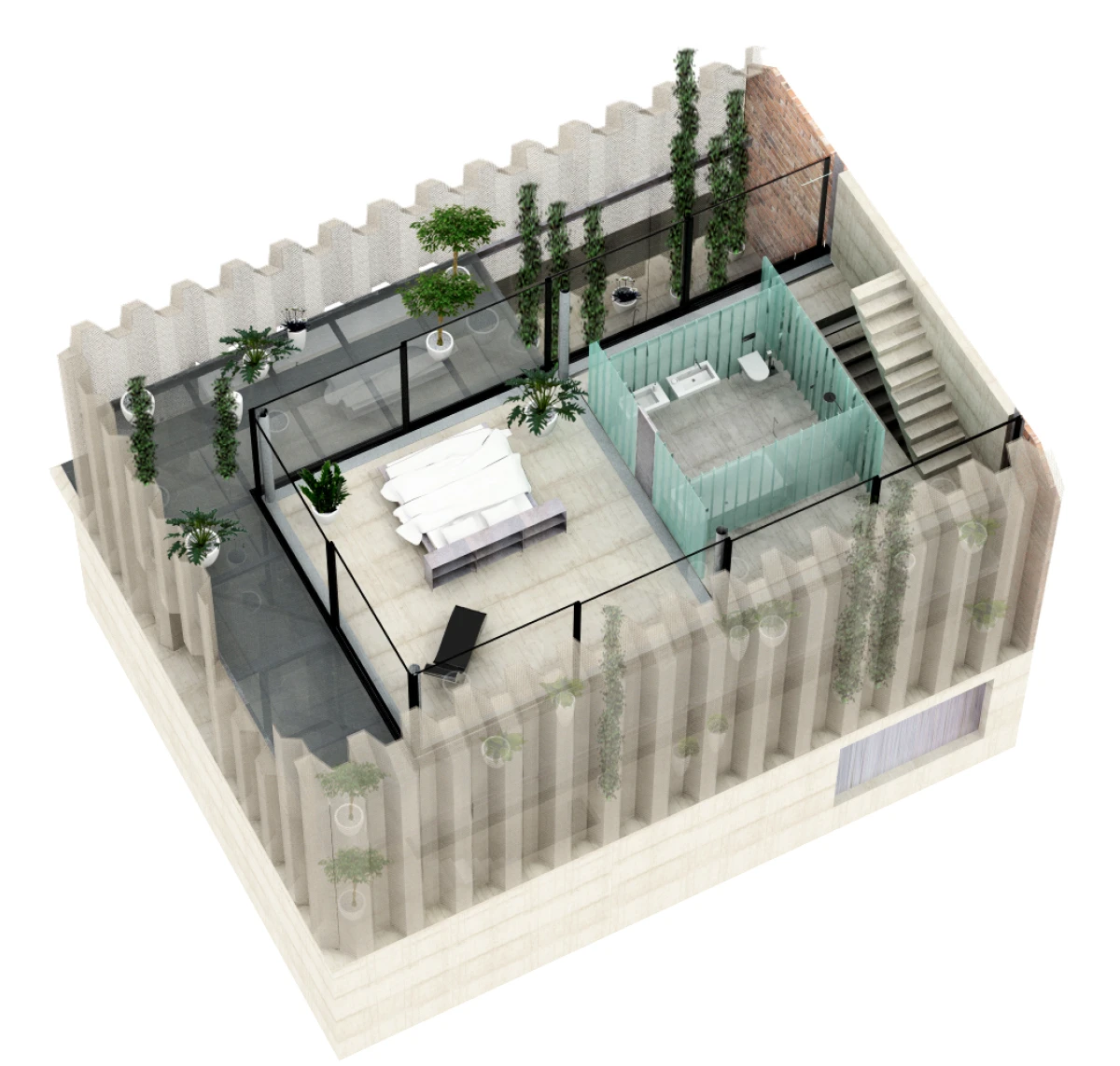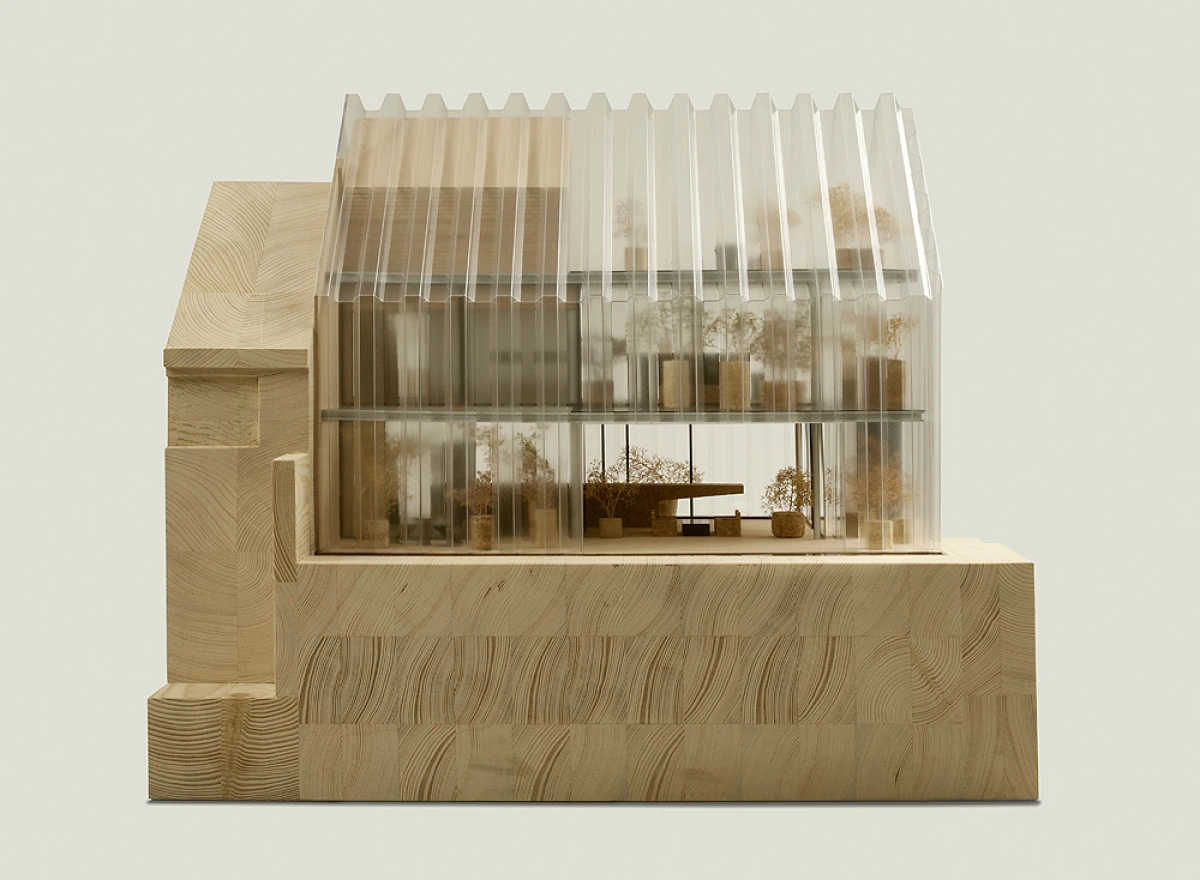 Ne příliš velký pozemek v Dolních Chabrech byl směrem do ulice zastavěn starším domkem, který nevykazoval žádné výjimečné kvality a navíc byl ve velmi špatném technickém stavu. Koncepcí celého návrhu bylo proto uvolnění pozemku pro novostavbu s větší zahradou. Architektonický návrh nové budovy vychází zhruba z objemu původní stavby se sedlovou střechou. Novostavba tak navazuje na vesnický charakter Dolních Chaber a přejímá archetypální tvar rodinných domů, které se nachází v jeho bezprostředním okolí. Koncepce stavby vychází ze záliby klientky, jejímž přáním bylo obklopit se maximálně rostlinami. Vsazením menšího objektu do hmoty novostavby tak vzniká meziprostor, který slouží jako zimní zahrada. Obytný prostor lze se zimní zahradou úplně propojit posuvnými stěnami a vytvořit tak dům – zahradu. Obvodové stěny jsou díky tomu navrženy jako průsvitné – propouštějící světlo pro dobré klima rostlin i rodinného domu. Na vnější plášť byly vyvinuty kompozitové průsvitné desky, zajišťující kromě nosné funkce, také tepelně-izolační vlastnosti stavby. Zalamovaná fasáda, vycházející svým tvarem z ocelových štětovnic, se pro účel stavby vyvíjela zhruba rok a kromě statických testů splnila i tepelně-izolační vlastnosti a světelnou pohodu pro pěstování rostlin. Proto, aby se meziprostor, kde se nacházejí rostliny, nepřehříval, jsou u paty a na vrcholu domu navrženy větrací klapky, které se při vyšší teplotě samy otevřou a umožní přirozené větrání stavby jako v případě některých skleníků.
