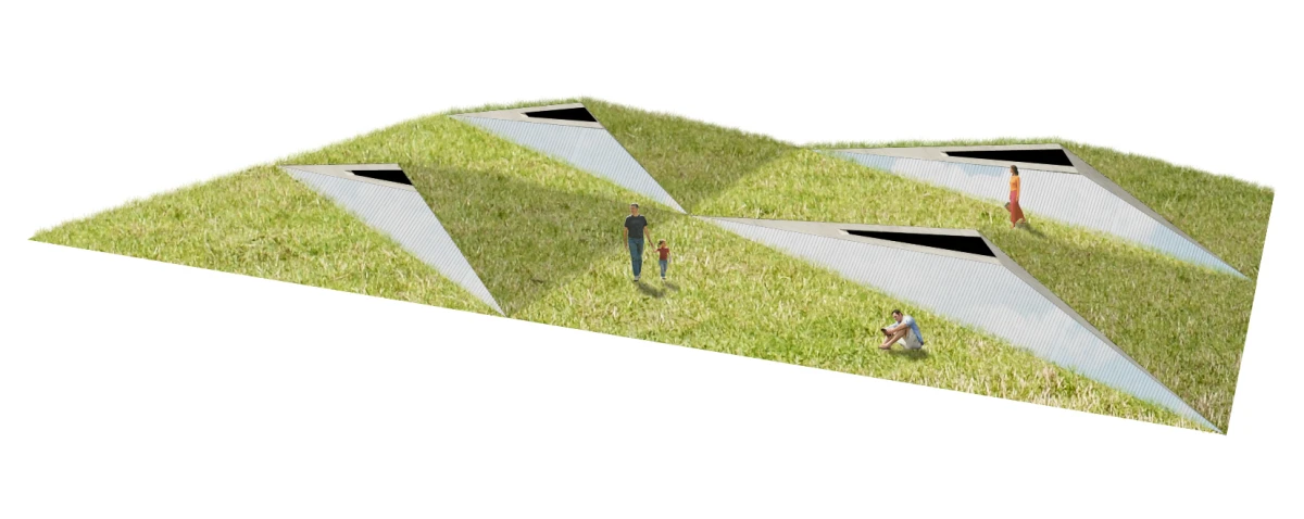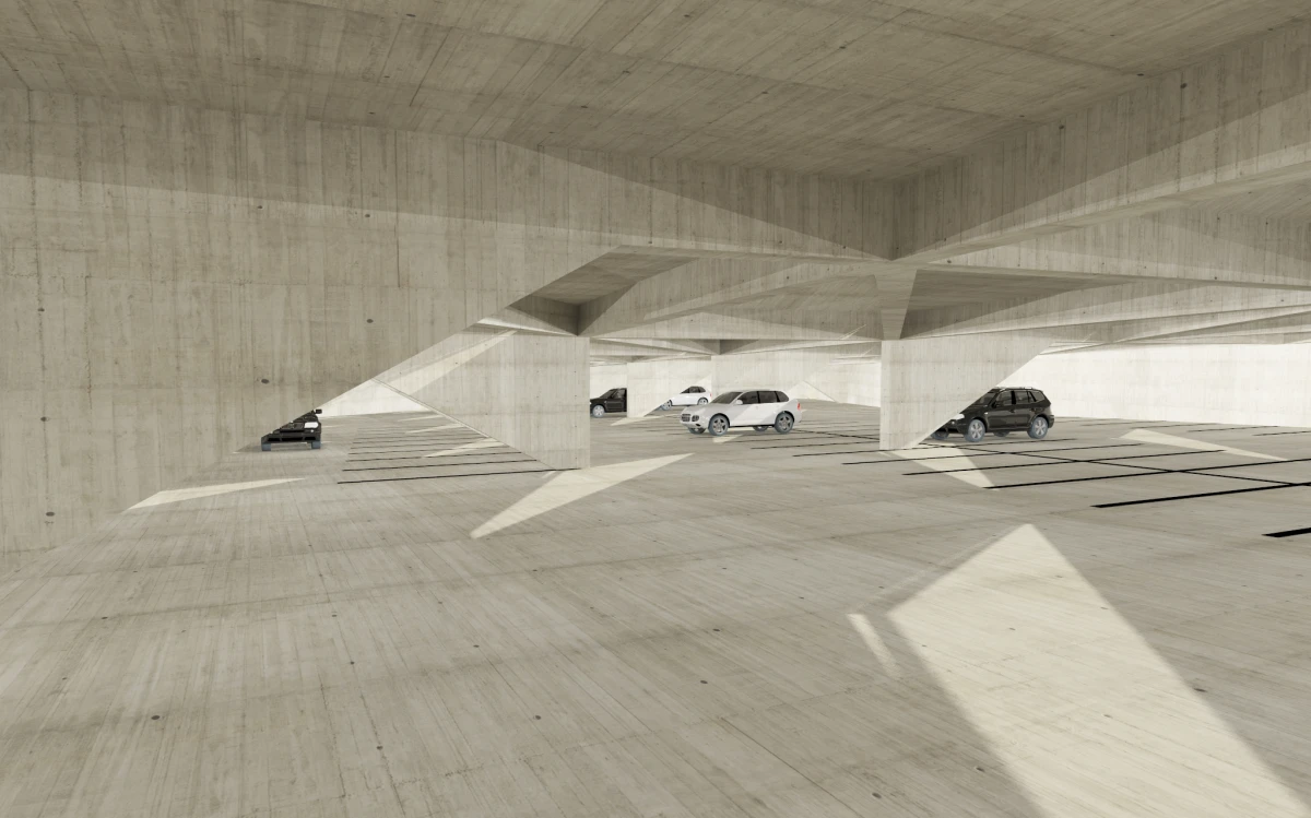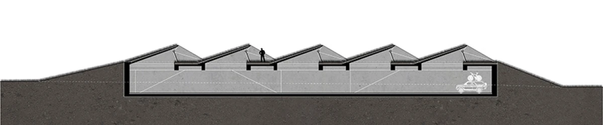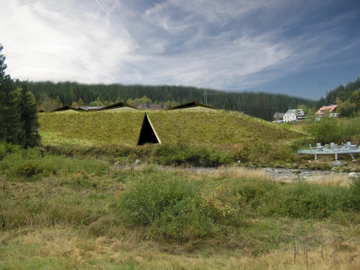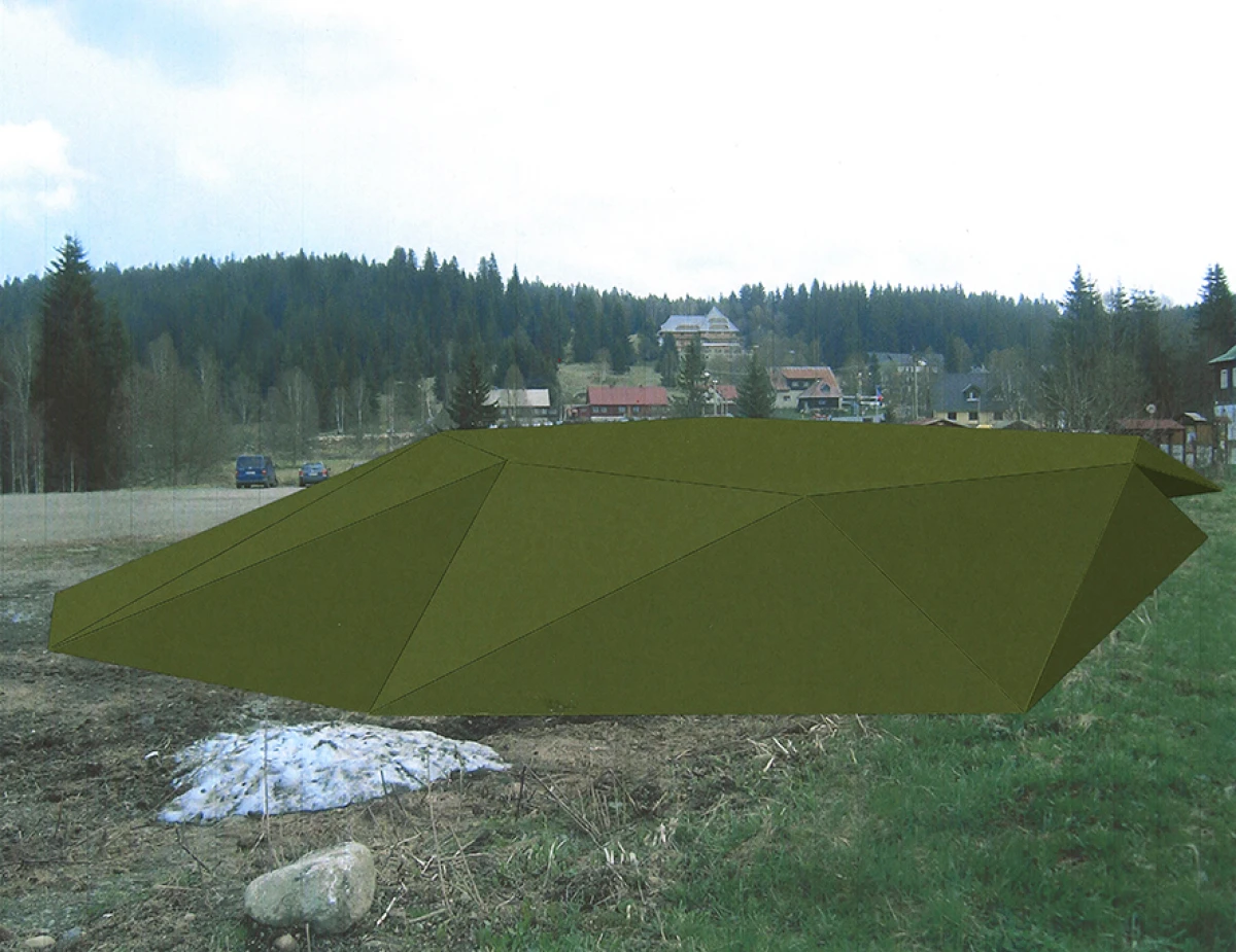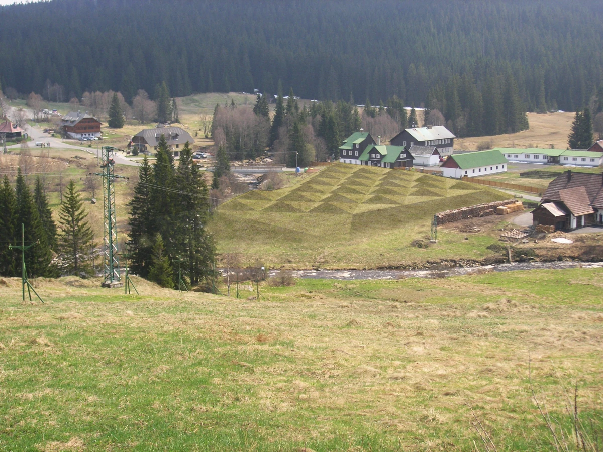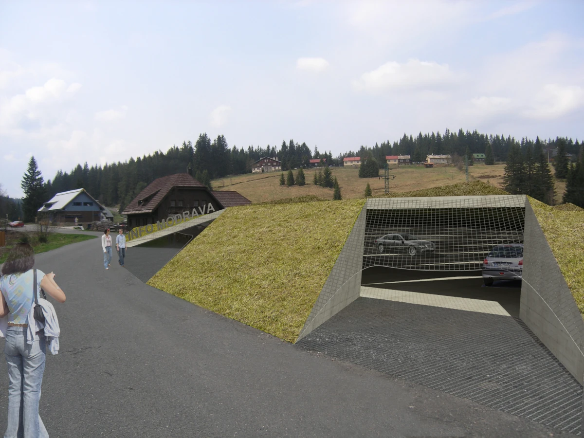 Obec Modrava sousedí bezprostředně s Národním parkem Šumava. Je známým výchozím bodem celoroční horské turistiky a díky tomu se stává přirozeným centrem této oblasti. Cílem projektu je eliminovat negativní projevy hromadného parkovacího stání v jednom z nejvíce atraktivních míst Modravy, a to mezi Roklanským a Modravským potokem. Proto je zvoleno takové řešení, které celé parkoviště skryje pod zelený kopec. Návrh počítá s tím, že by se plocha garáže spustila o 1m pod úroveň stávajícího terénu a 3m nad terénem by se vystupující část zakryla přírodní zatravněnou muldou. Tím by se parkoviště pro 140 aut skrylo pod zemí a nenarušovalo tak půvabnou krajinu při soutoku obou potoků. Základním urbanistickým konceptem celého návrhu je maximální respekt vůči krajině a snaha, aby se navrhovaná stavba stala její nedílnou součástí. Objekt bude využíván zejména jako veřejné parkoviště, ale k jeho dalším funkcím patří také informační turistické centrum, veřejné toalety se sprchami, úschovna kol, ale i noclehárna pro příležitostné přespání v případě nouze.