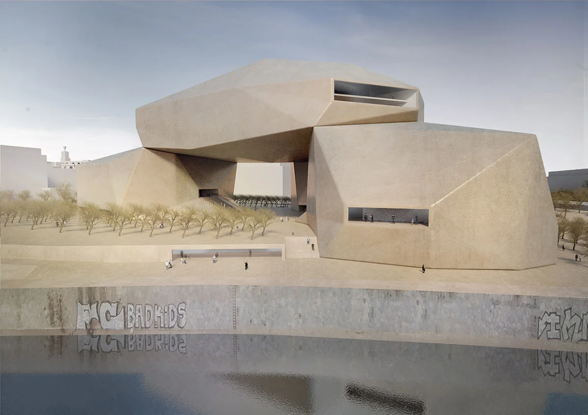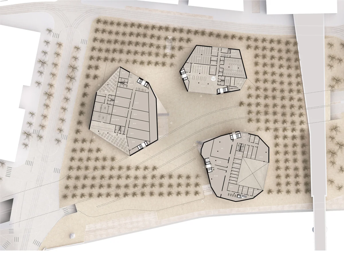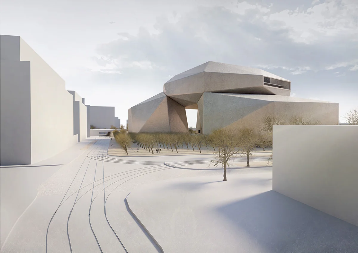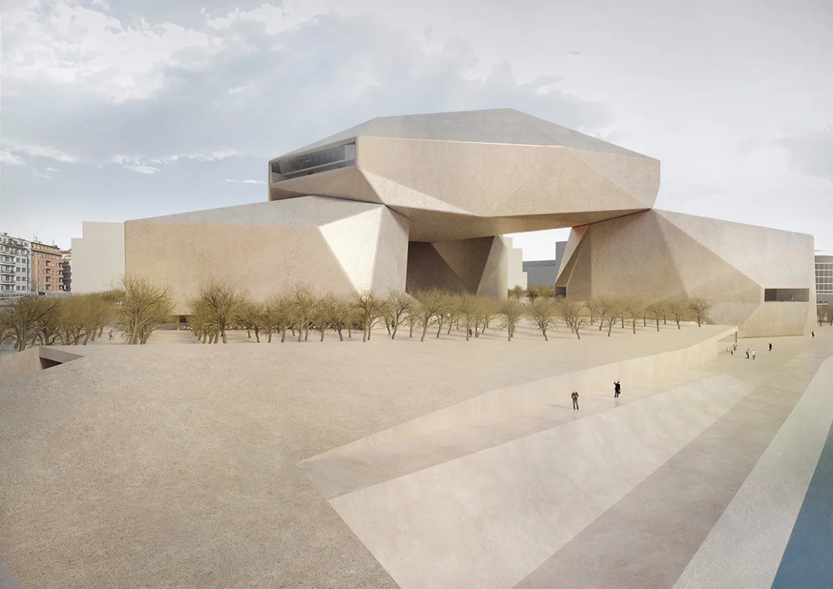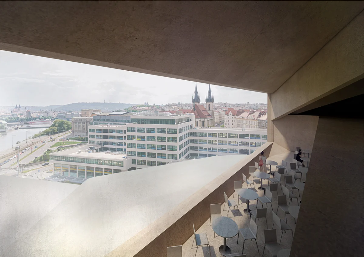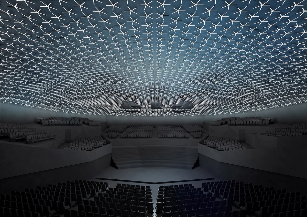Naším cílem je vytvořit novou identitu místa. Člověk měl odnepaměti touhu zastřešit prostor. Nejlepším dokladem jsou megalitické stavby – dolmeny. Koncepce dolmenu má vyjadřovat monumentalitu, kterou vnímáme především v její duchovní hodnotě. Navrhujeme tak náměstí jako zastřešený prostor, nad kterým se vznáší koncertní sál. Poskytuje svobodu, ale zároveň budí respekt. Málokterá světová filharmonie má kolem sebe živý veřejný prostor. Jakým způsobem docílit živého náměstí při zachování klidného a soustředěného prostředí koncertní haly? Tato otázka nás provázela při přemýšlení nad konceptem stavby. Řešíme ji vyzdvižením hlavního sálu. Náměstí je chráněno od rušného okolí třemi podporami, na kterých je hlavní sál posazen. Každá z podpor rovněž obsahuje sál. Pomyslně tedy tři sály nesou na svých bedrech velký sál. Na náměstí jsou situovány hlavní vstupy do filharmonie a do jednotlivých sálů, dále se zde nachází restaurace, obchody, kavárna a je tu možné pořádat drobná hudební vystoupení v otevřeném amfiteátru, kde je také situován hlavní vchod. Navržené rozmístění „kamenů“ zohledňuje řadu problematických tras, které tudy vedou. Jednou z nich je trasa průjezdné komunikace, jež je vedena pod navrženou platformou. Stejně tak reagujeme ustoupením jednotlivých objektů trase metra, kdy není možné hlubinné založení v místě tubusu. Tím je vymezen veřejný prostor na povrchu navržené platformy, který je věnován čistě pěším. Hlavní sál představující vnitřní jádro chce být nástrojem. Jeho geometrie se utvářela na základě akustických parametrů. Následně jsme ho uzavřeli do vnější skořápky, jež jej chrání před hlukem z okolí. Jádro a skořápka představují jedno těleso. To, co vnímáme z exteriéru jako obrovský kámen, nacházíme v interiéru v podobě jádra. Stejně jako u lískového ořechu se jádro podobá skořápce. Prostoru hlavního sálu dominuje modré pozadí, které směrem k pódiu a hledišti přechází do tmavě modré. Stropu vévodí umělé osvětlení v podobě stylizovaných hvězd. Naší inspirací se staly historické výmalby kleneb kaplí a kostelů, jež pracují s hvězdnou oblohou. Ostatní sály jsou v interiéru rovněž barevně pojednané. Použité materiály podporují celkový koncept návrhu. Novostavba je kompletně pojata jako odlitek z monolitického železobetonu. Beton uvažujeme probarvený, sametově hnědý, s vysokým leskem, kdy by se do bednění vkládaly speciální lesklé fólie. Betonový povrch všech vložených sálů chceme ze strany foyeru opatřit hrubým pemrlováním. Tím docílíme kontrastu mezi hladkým, lesklým povrchem fasády a hrubým vsazeným jádrem, které představují samotné sály.