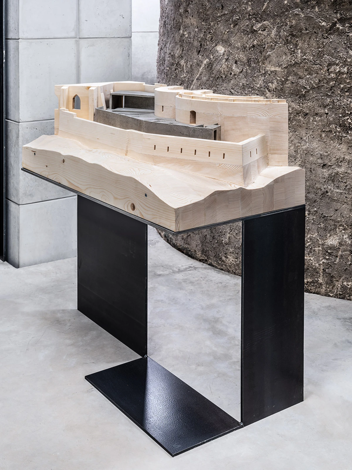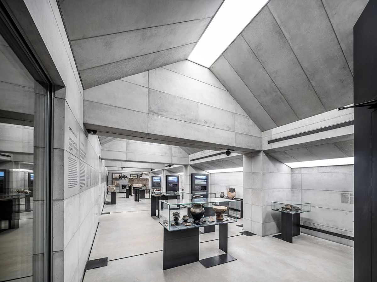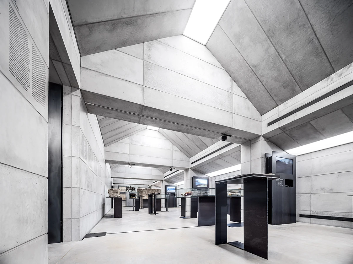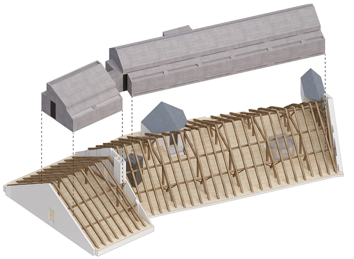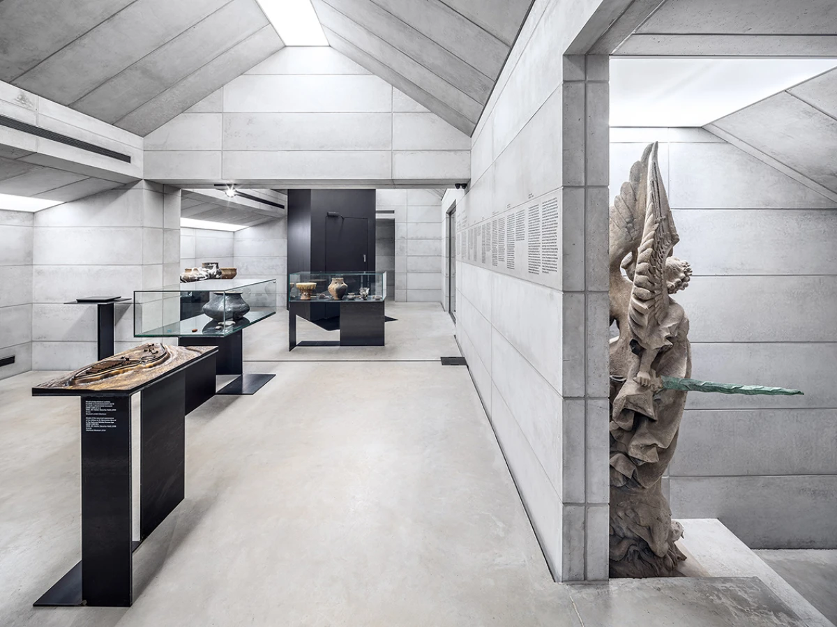 Návrh nového výstavního sálu v podkroví kapitulního děkanství navazuje na úpravy z let 1998‒2006, kdy vzniklo Arcidiecézní muzeum Olomouc. Při jeho promýšlení jsme si kladli otázku míry zásahů do stávajícího podkroví. Nepřišlo nám vhodné izolovat dřevěné konstrukce, proto jsme zamítli standardní zateplení půdního prostoru. Naše koncepce respektuje dochované konstrukce, které ponecháváme v původním stavu, včetně krytiny. Do prostoru vkládáme betonový objekt s vrchním osvětlením, jenž má dostatek svislých stěn pro vystavování. Přejímá geometrii zkoseného podkroví s tím, že si udržuje odstup od historických konstrukcí. Jedná se o jakousi matrjošku, kdy je menší dům vsazený do většího. Objekt jsme navrhovali, jako by byl umístěn ve venkovním prostředí. Jediné, co jsme nemuseli řešit, byla izolace proti vodě – tu zajišťuje stávající střecha. Všechny obvodové konstrukce nového objektu splňují tepelně-technické parametry. Zároveň jsme do nich integrovali veškeré technologie jako vytápění, vzduchotechniku či osvětlení. Samotný půdní prostor se obešel bez nových technologií a izolací. Nové tedy odpovídá naší době a staré si uchovává patinu i atmosféru. V podkroví nalezneme stálou expozici mapující historii svatováclavského návrší od pravěku po současnost. Do té jsme navrhli kovové sokly pro exponáty a stojany pro virtuální procházky návrším. Z výstavního sálu lze proskleným otvorem spatřit vrchní část klenby, jež je zajímavým dokladem pestrého vývoje děkanství. Dalším prosklením je pak možné nahlédnout do zbylé části podkroví, ponechané ve stávajícím stavu, kde se také dají vystavovat některé exponáty. Na stálou expozici navazuje edukační místnost se zázemím a skladem.